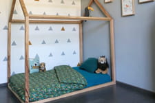 Vous pouvez opter pour un lit modulable, qui grandira avec votre enfant. Sinon, choisissez plutôt un lit simple, sans tête de lit. Et si vous préférez un lit surélevé, il en existe pour tous les âges et vous pourrez aménager un espace de jeu au sol, juste en dessous. Ensuite, décorez le lit à l'aide de coussins, doudous et draps colorés (mais pas bariolés) qui se marieront à merveille avec les couleurs sobres que vous aurez choisies pour les murs. N'oubliez pas une jolie veilleuse pour la nuit.