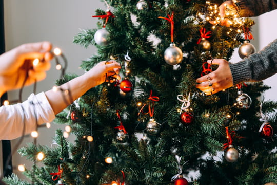 Avant toute chose, rassemblez vos décorations au pied de votre sapin, afin de vous éviter d'inutiles aller-retour. Vérifiez que votre déco de Noël, surtout si elle a quelques années, est bien intacte et que votre guirlande fonctionne, sinon changez-la. Selon la taille de votre sapin (et la vôtre), pensez à prendre un marchepied ou encore un escabeau.