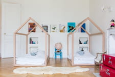 Vous pouvez opter pour un lit modulable, qui grandira avec votre enfant. Sinon, choisissez plutôt un lit simple, sans tête de lit. Et si vous préférez un lit surélevé, il en existe pour tous les âges et vous pourrez aménager un espace de jeu au sol, juste en dessous. Ensuite, décorez le lit à l'aide de coussins, doudous et draps colorés (mais pas bariolés) qui se marieront à merveille avec les couleurs sobres que vous aurez choisies pour les murs. N'oubliez pas une jolie veilleuse pour la nuit.