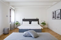 - Une lampe de chevet design : il faudra alors miser sur un modèle épuré au possible. Vous pourrez même vous affranchir de la forme traditionnelle avec un pied et un abat-jour en textile en préférant un modèle boule ou en optant pour une lampe en verre. Préférez aussi des matériaux comme le métal, le plexiglas ou encore le plastique.