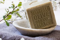 Pour l'entretien de votre carrelage en marbre, oubliez les produits ménagers qui risqueraient d'abîmer et de ternir l'éclat de la roche. Optez pour un mélange eau chaude + savon de Marseille ou savon noir liquide. Terminez en séchant le sol et les murs en aérant ou à l'aide d'une serviette si la surface de la pièce le permet.