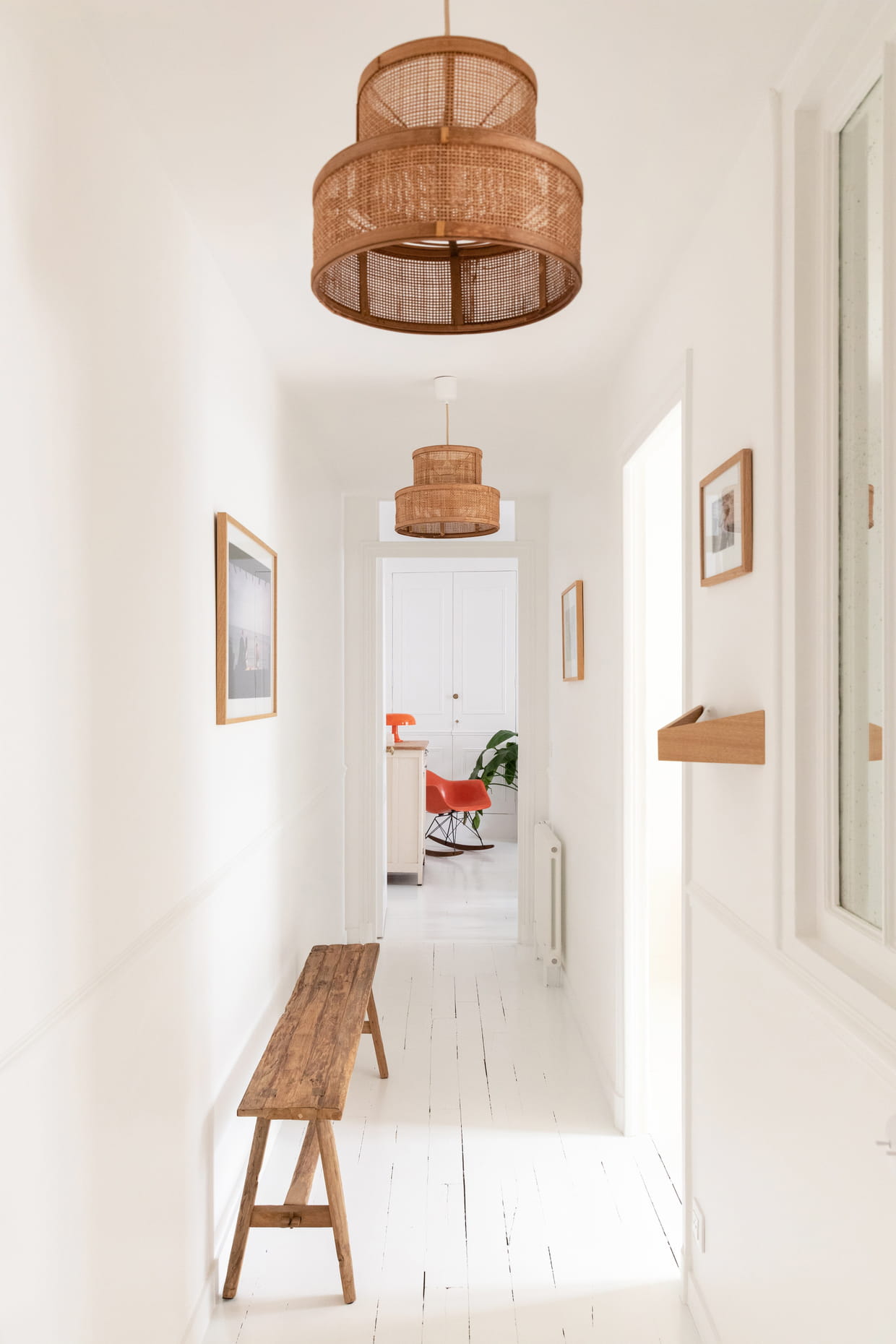 Après : une entrée lumineuse et authentique avec une déco plus naturelle