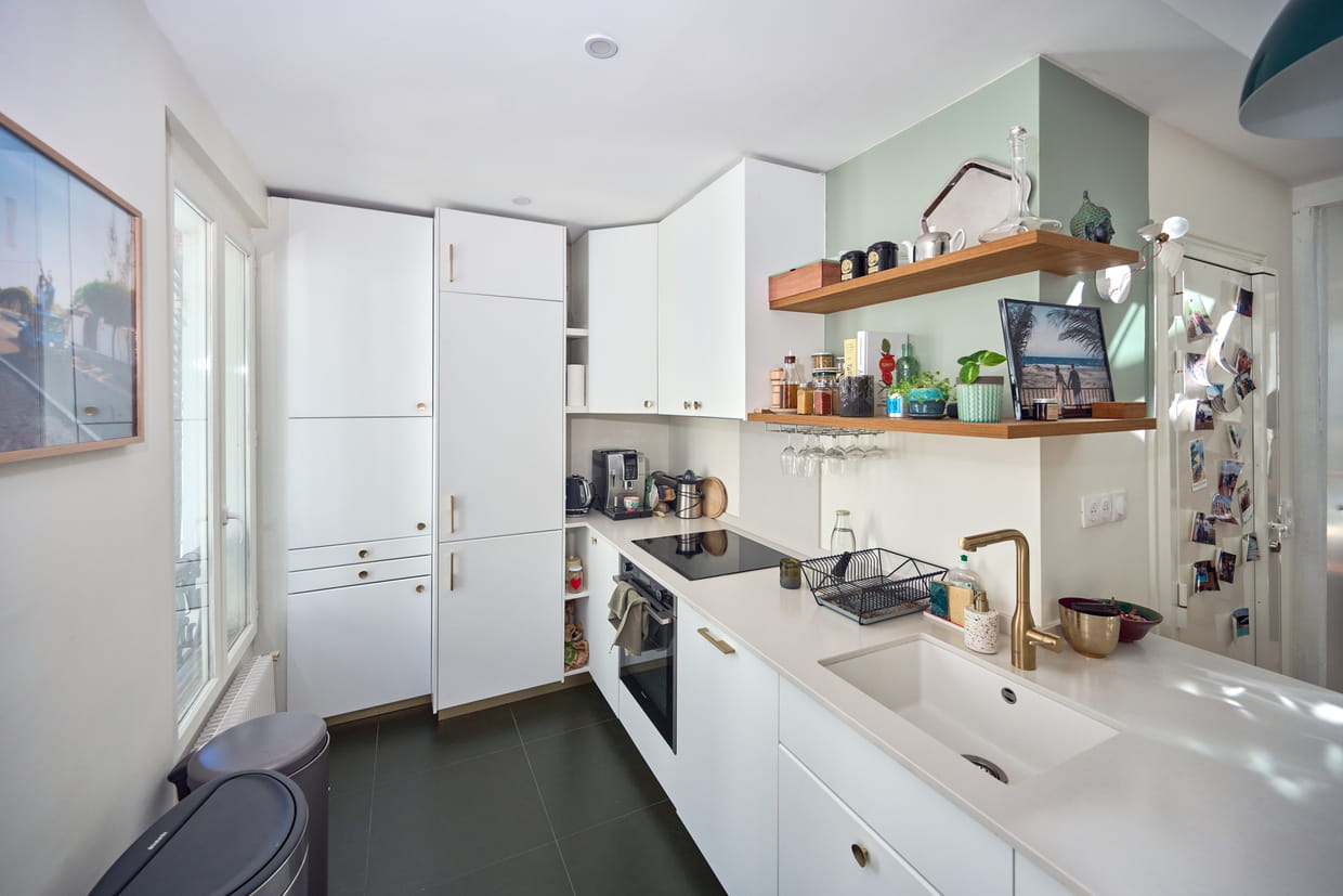 Après : une cuisine toute équipée aux tons clairs