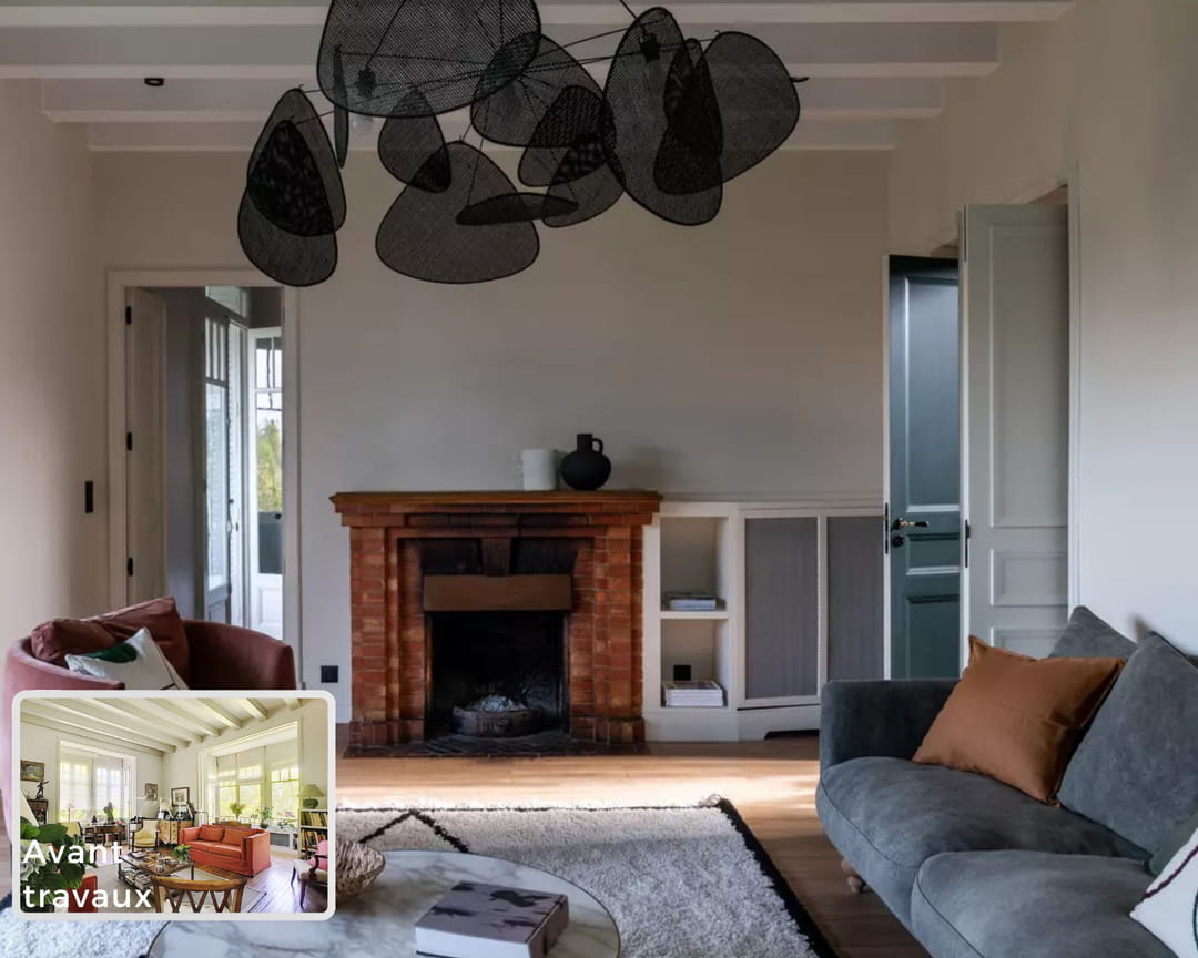 Avant-après : un salon classique modernisé tout en conservant ses poutres d'origine