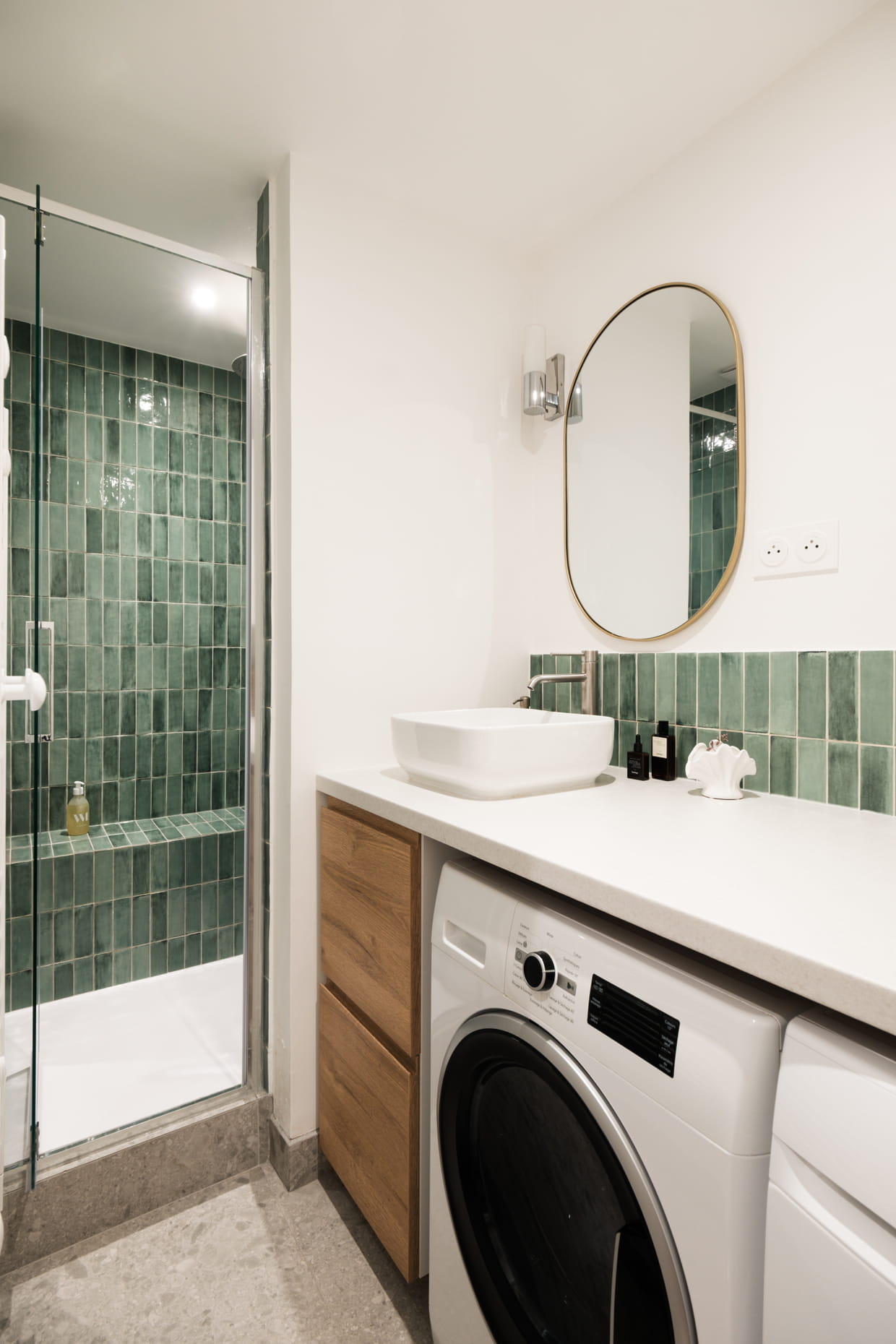 Après : une salle d'eau bien organisée et décorée avec goût