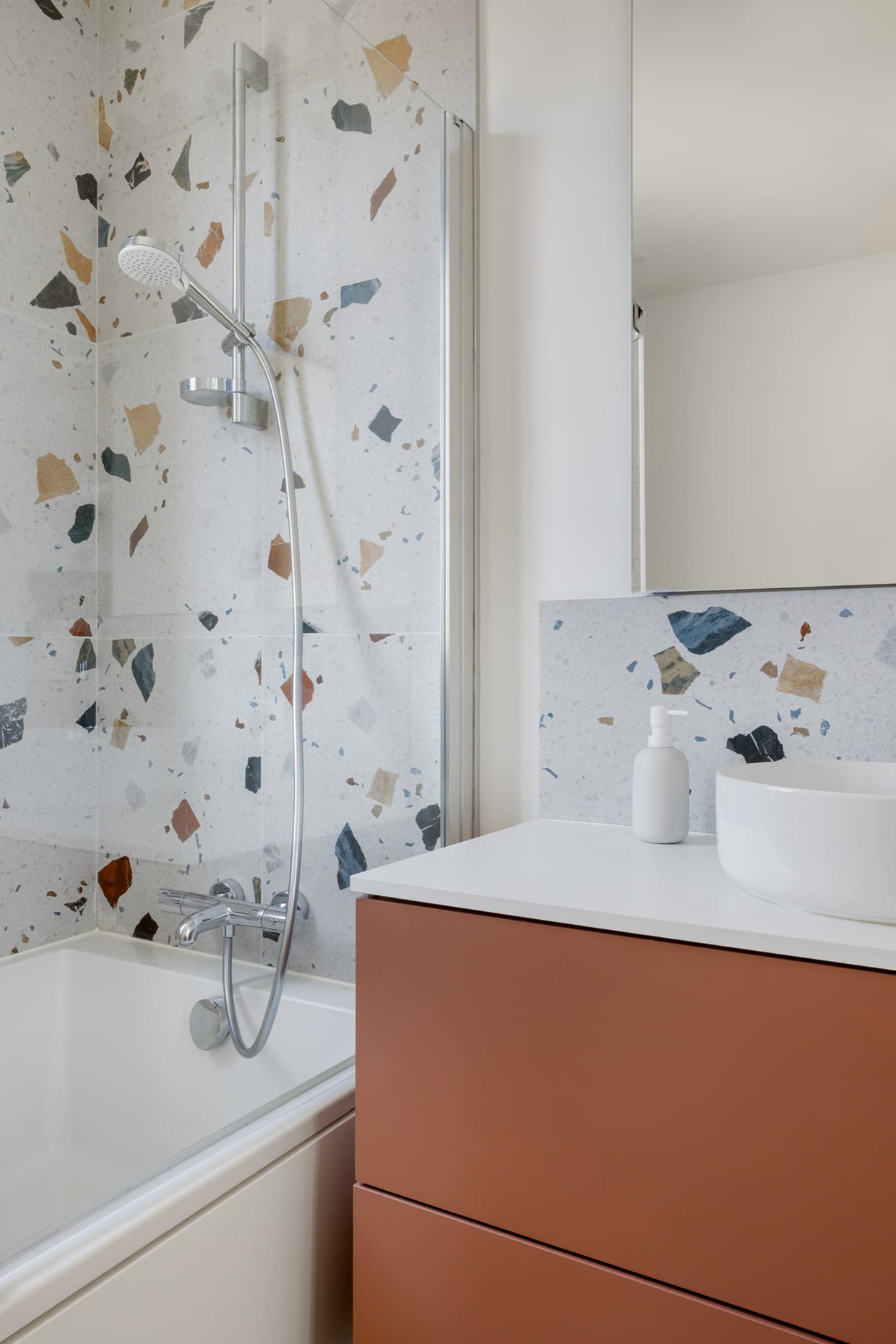 Après : une salle de bains pétillante au style terrazzo