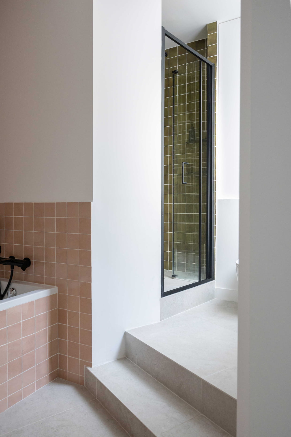 Après : une salle de bains avec baignoire et douche