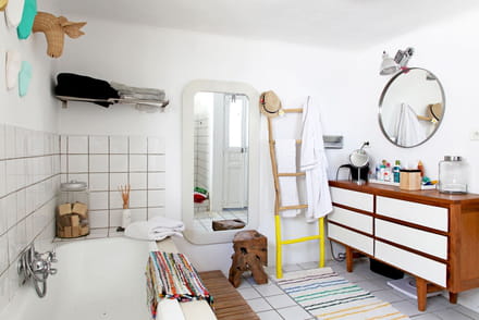 Toute de blanc vêtue, cette salle de bains ne fait pas pâle figure pour autant. Sans se cantonner à un seul et même style, les heureux propriétaires des lieux ont aménagé et décoré une pièce d'eau qui mixe et matche les inspirations.