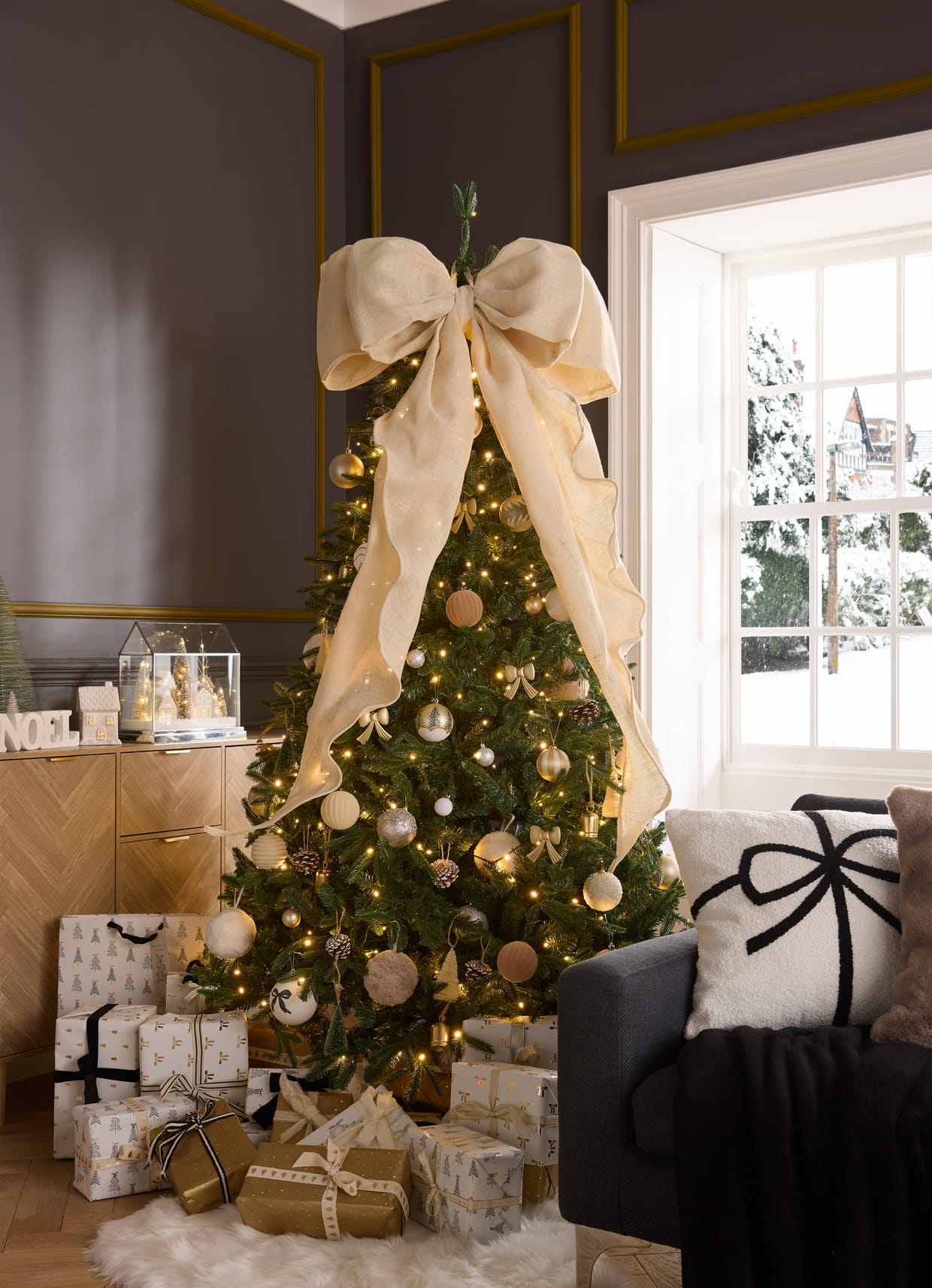Un sapin de Noël avec un nœud façon joli cadeau