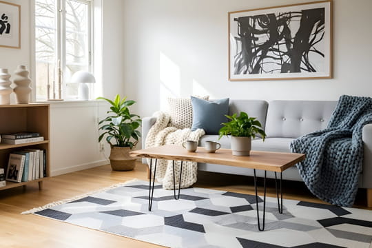 C'est surtout la signature géométrique du style scandinave typique de 2016 qu'on ne veut plus voir aujourd'hui dans les intérieurs. Ces motifs, omniprésents dans les publications déco et sur les plateformes d'inspiration, sont désormais perçus comme froids et dépassés, constituant un véritable écueil décoratif contemporain. En un mot, il faut oublier les chevrons, les triangles et les losanges colorés qui apparaissaient sur tous les éléments décoratifs : revêtements de sol, mobilier, grands tapis, autocollants muraux et textiles.
