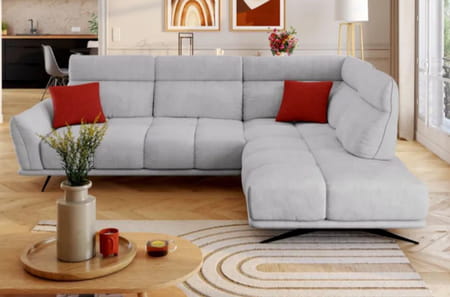 Pour celles qui veulent vraiment investir dans leur salon, deux modèles se démarquent. L'AUGUSTIN relax méridienne à 1 599 € propose une assise moelleuse, des formes enveloppantes et une méridienne orientable selon la configuration du salon. Le GIOVANNI monte encore d'un niveau avec son tissu bull et sa silhouette très architecturale, disponible en 2 places, 3 places, d'angle ou panoramique, à partir de 1 899 €. Les deux existent dans une palette de coloris généreuse, du gris clair au bleu, en passant par le vert, le taupe ou la crème.